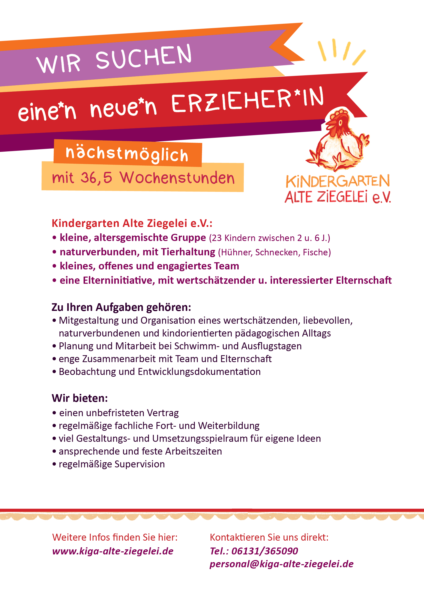 Bei Interesse oder für weitere Infos kontaktiere uns via personal@kiga-alte-ziegelei.de.